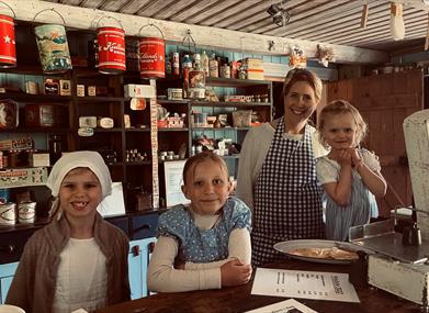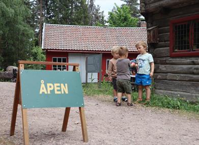 Skustad landhandel på Friluftsmuseet i Bragernesåsen er åpen 12-15. Vi har salg av nystekte sveler, kaffe, te, saft og is med mer.