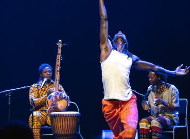 Calabash Tales er en varm, musikalsk fortellerforestilling som tar barna med inn i de magiske rytmene og historiene fra Vest-Afrika.