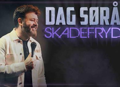 Dag Sørås - «Skadefryd» En klok mann sa en gang at om du vil unngå å falle av sykkelen, så må du bare fortsette å tråkke raskt. Dette er en treffende beskrivelse av karrieren til Dag Sørås, som etter over 20 år som standup-komiker fortsatt holder et imponerende tempo. «Skadefryd» er røft regnet Dags syvende soloshow, og veien hit har gått fra brune barer og ombygde utedasser, til de største kulturhusene i landet. Publikum har ikke bare tatt reisen med nordlendingen, men også formert seg kraftig underveis. Som alltid byr Dag på sylskarp samfunnskritikk og nådeløs egenterapi, filtrert gjennom en solid dose livserfaring. Skadefryden spres med andre ord sjenerøst i alle retninger – en påminnelse om hvor jævlig og jævlig fint livet kan være.