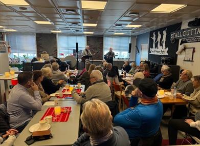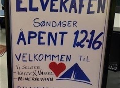 Hyggelig i Elvekafeen, som en rast langs turveiene rundt Drammensælva. Vi selger kaffe og vaffel, og vi har ofte gratis søndagskonserter 14-15. Kafeen er søndagsåpen kl 12-16.