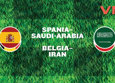 Søndag 21. juni kl. 18:00 møter Spania Saudi-Arabia, før Belgia tar imot Iran kl. 21:00.