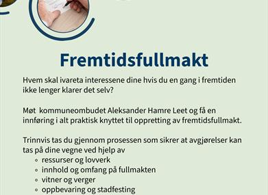 Møt kommuneombudet Aleksander Hamre Leet og få en innføring i alt praktisk knyttet til oppretting av fremtidsfullmakt.