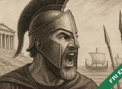 I historietimen #06 på Drammen kulturhus stiller vi følgende spørsmål: Hvordan kunne all den greske skaperkraften springe ut av samme samfunnssystem som de fryktede greske falanksene, de som herjet med persernes armeer og således var en forutsetning for den greske gullalderen i like stor grad som gresk åndsliv var det?