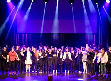 Publikum vil få se og høre alle musikklinjas 90 elever i aksjon på scenen og i orkester og band. Våre kjære venner på dans- og dramalinjene er også med for å kaste glans over feiringen.
