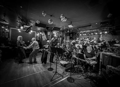 Her blir det en fin blanding av julemusikk og andre storbandperler.