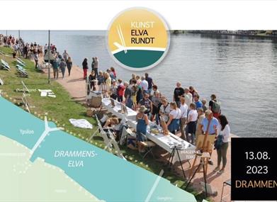 Stor og fargerik folkefest langs Drammenselvas bredder! Velkommen til publikum fra fjern og nær når 100 etablerte og uetablerte kunstnere stiller ut side om side!