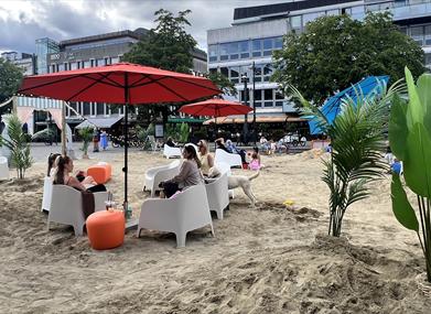 La Drambla er Drammens nye strandlounge som er til for absolutt ALLE, både store og små. La Drambla finner du på Bragernes torg, midt i Drammen sentrum. Det koster ikke noe å være på La Drambla og det selges ikke noe der.