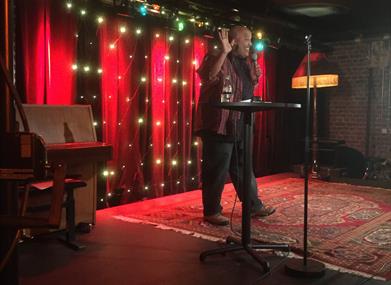 Sist men ikke minst, John Alan Reese. John Alan har vært borte fra stand up scenen noen sesonger. Men det er på scenen han hører hjemme. Født i Amerika, mellomstasjon i Finnmark og nå bosatt i Drammen. Vi elsker å se John Alan på scenen.