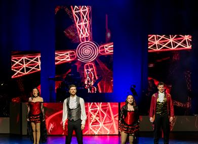 profesjonelle sangere, dansere og et liveorkester, noe som skaper en unik og