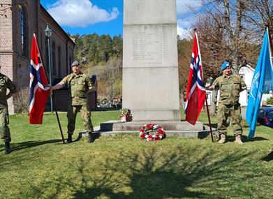 Vi feirer vår frigjøringsdag og veterandag med flaggborg, kransenedleggelser, Taler, Musikk og Saluttering. Ta på deg medaljer og møt opp og vær med på feiringen.