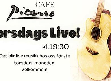 Vi avslutter årets Torsdags - Live med "Jule-jam". Vi kan love topp stemning på Torsdags Live på Café Picasso. Robert Rustad Amundsen med venner sørger for musikken. Dette skjer første torsdag i måneden - velkommen!