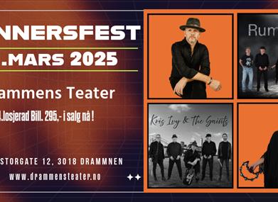 Vennersfest i Fjerde Losjerad Drammens Teater. Åpent arrangement for alle som digger levende musikk. En scene, 2 band. Her kan du høre levende musikk samt mingle med noe godt i glasset.