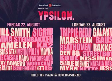 Musikkfestivalen Ypsilon er oppkalt etter sin arkitekttegnede navnebro Ypsilon, porten inn til en verden av musikk, god stemning og unike opplevelser. I tillegg til noen av de mest spennende artistene musikkverden har å by på, får du en opplevelse helt utenom det vanlige.