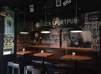 Kom innom Goggen sportspub om du liker øl, pølse og fotball! En bar med god stemning og et hyggelig lokale!