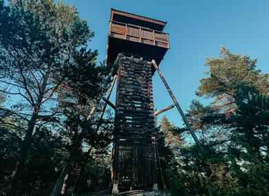 Om ikke en tur opp i høyden frister, er det laget en rasteplass ved foten av tårnet. Arkitekten bak byggverket er arkitekt Arne Finn Solli.