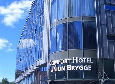 Comfort Hotel Union Brygge ligger midt i det "nye" Drammen med Drammenselven og Union Scene som nærmeste nabo. I området rundt hotellet finner du et stort tilbud av restauranter, barer og shopping. Hotellet ligger bare få minutters gåtur fra Drammen togstasjon, der du kan ta flytoget til Gardermoen flyplass som ligger en time unna. Comfort Hotel Union Brygge ligger også nære skibakker, golfmuligheter og Drammensbadet - Norges mest moderne innendørs svømmebasseng.